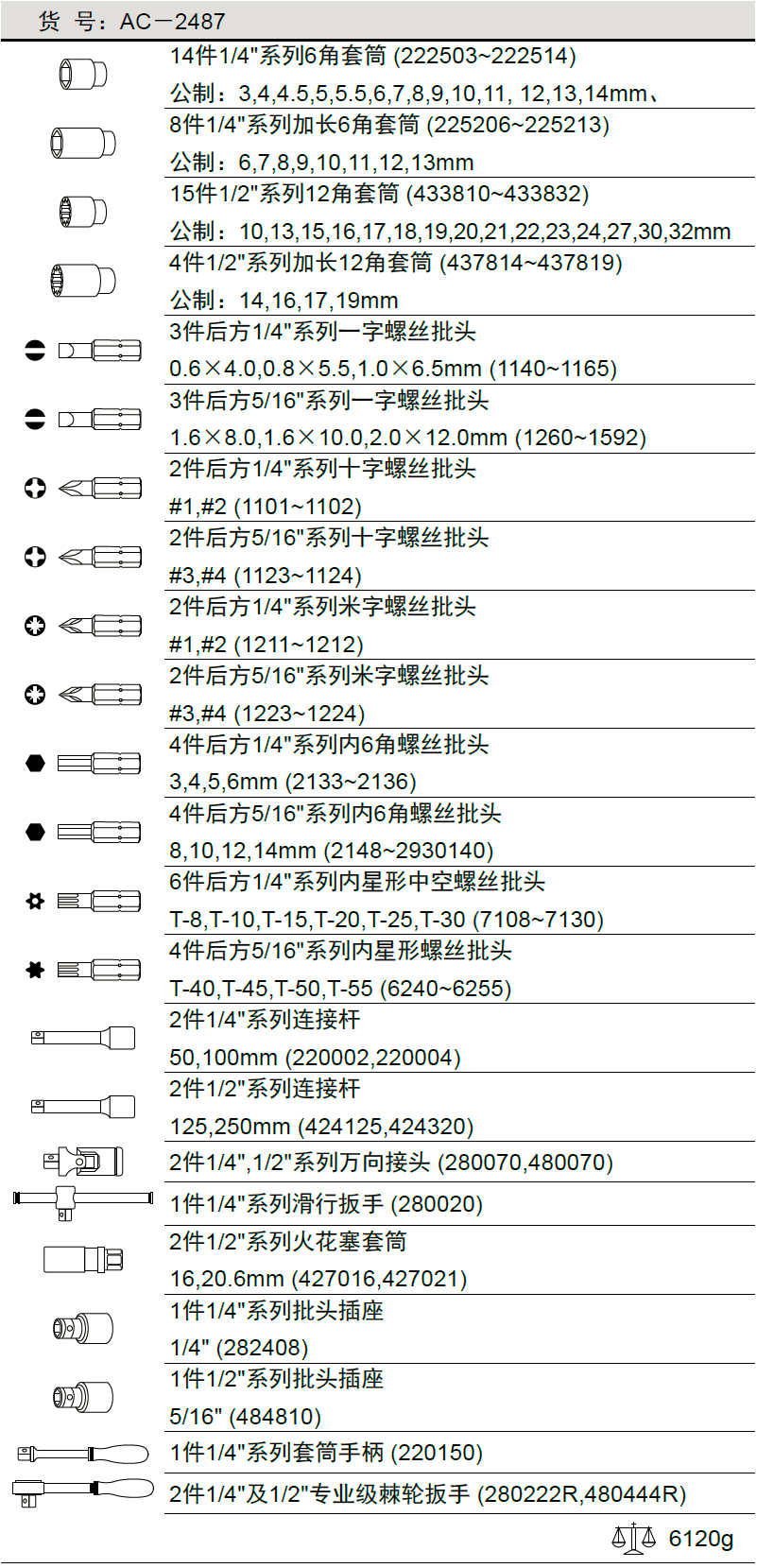 天赋工具1/4",1/2"系列 87件套公制专业套筒扳手组AC-2487