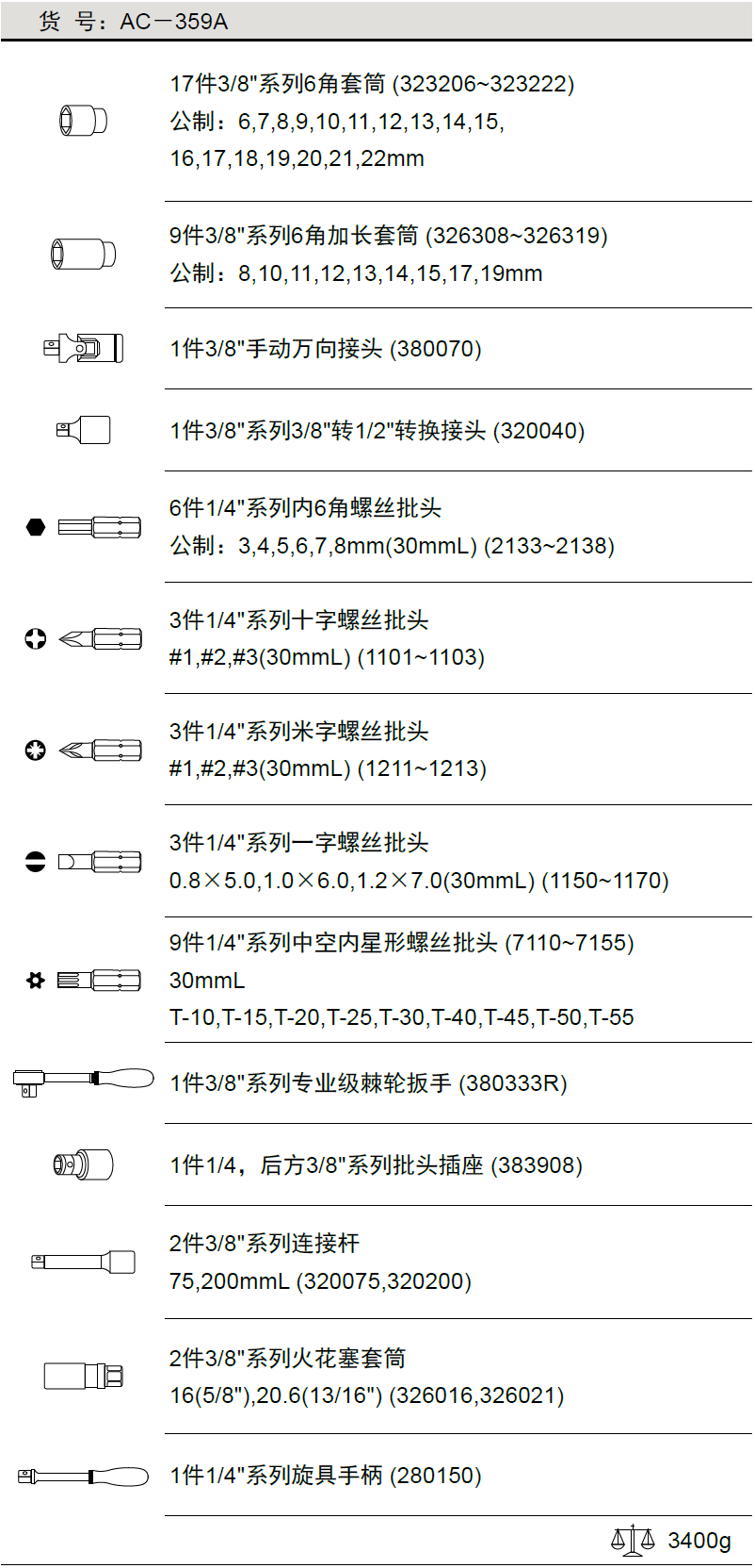 3/8"系列 59件套公制套筒扳手组AC-359A