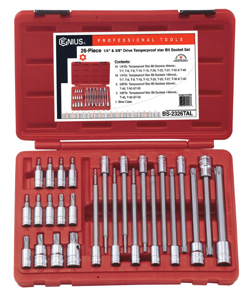| BS-2326TAL | 26件内星形中空旋具套筒组 | 1/4″& 3/8″ | 套 | 1550g | 3天 |