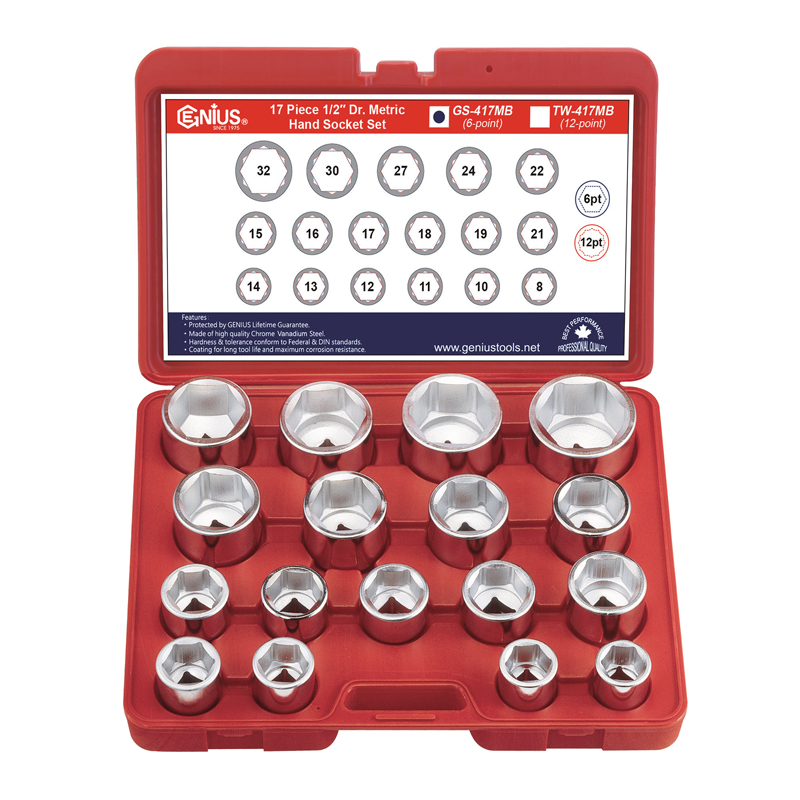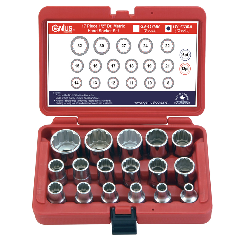 天赋工具1/2" 系列17件套公制手动6角套筒组GS-417MB