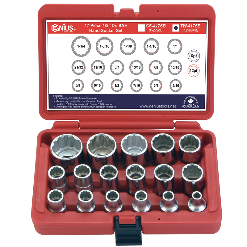天赋工具1/2" 系列17件套英制手动6角套筒组GS-417SB