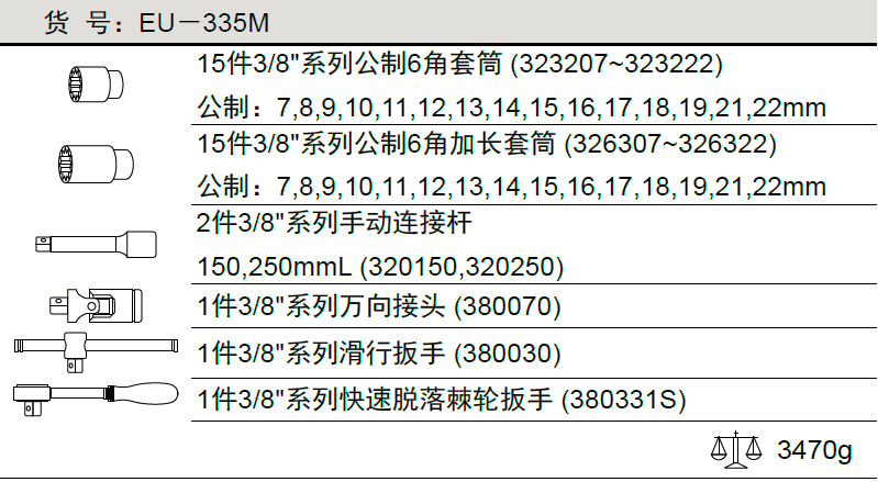 3/8"系列35件套公制手动套筒及扳手组EU-335M