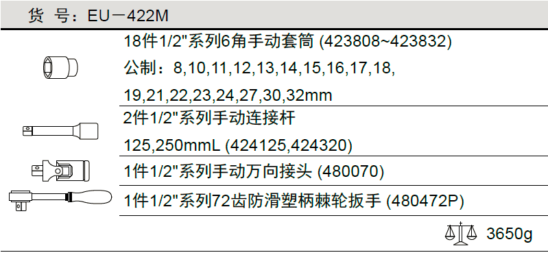 1/2"系列 22件套公制套筒扳手组EU-422M