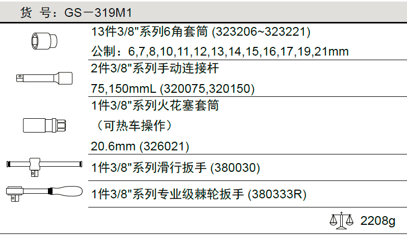 3/8"系列 18件套公制套筒扳手组GS-319M1