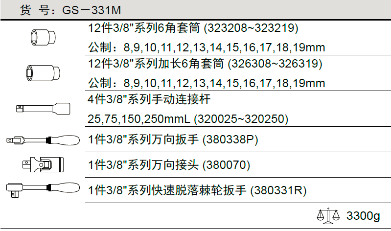 3/8"系列 31件套公制长短套筒扳手组GS-331M
