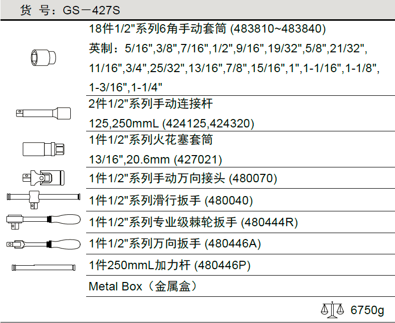 1/2"系列 27件套英制套筒扳手组GS-427S