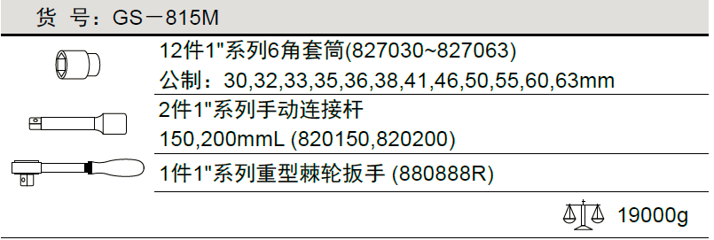 天赋工具1"系列 15件套公制重型套筒扳手组GS-815M