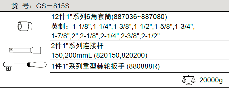 天赋工具1"系列 15件套英制重型套筒扳手组GS-815S