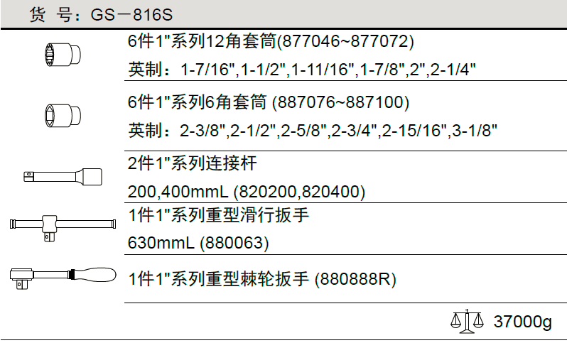 天赋工具1"系列 16件套英制重型套筒棘轮扳手组GS-816S
