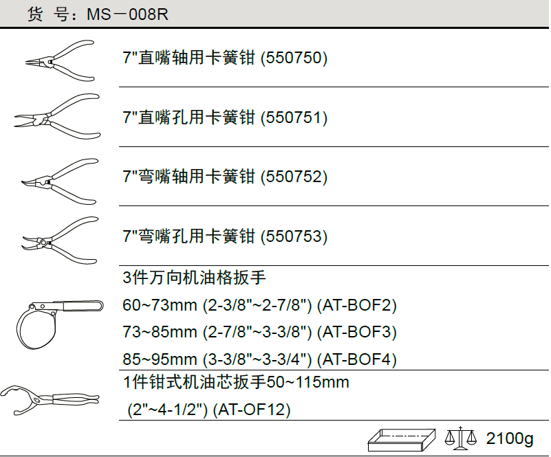 8件套卡簧钳与万向机油格扳手组
