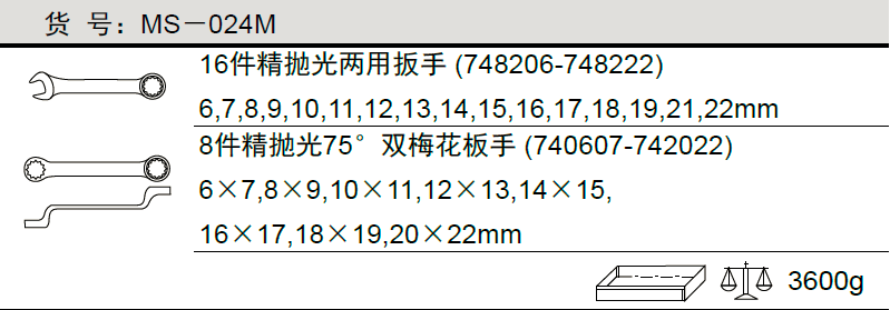 天赋24件套精抛光梅开和75°双梅花扳手组MS-024M