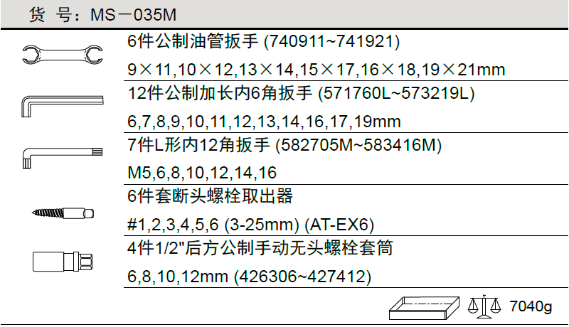 天赋工具35件套公制油管和内6角扳手组MS-035M