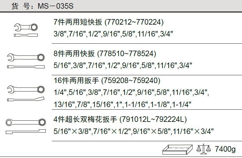 天赋工具35件套英制综合扳手MS-035S