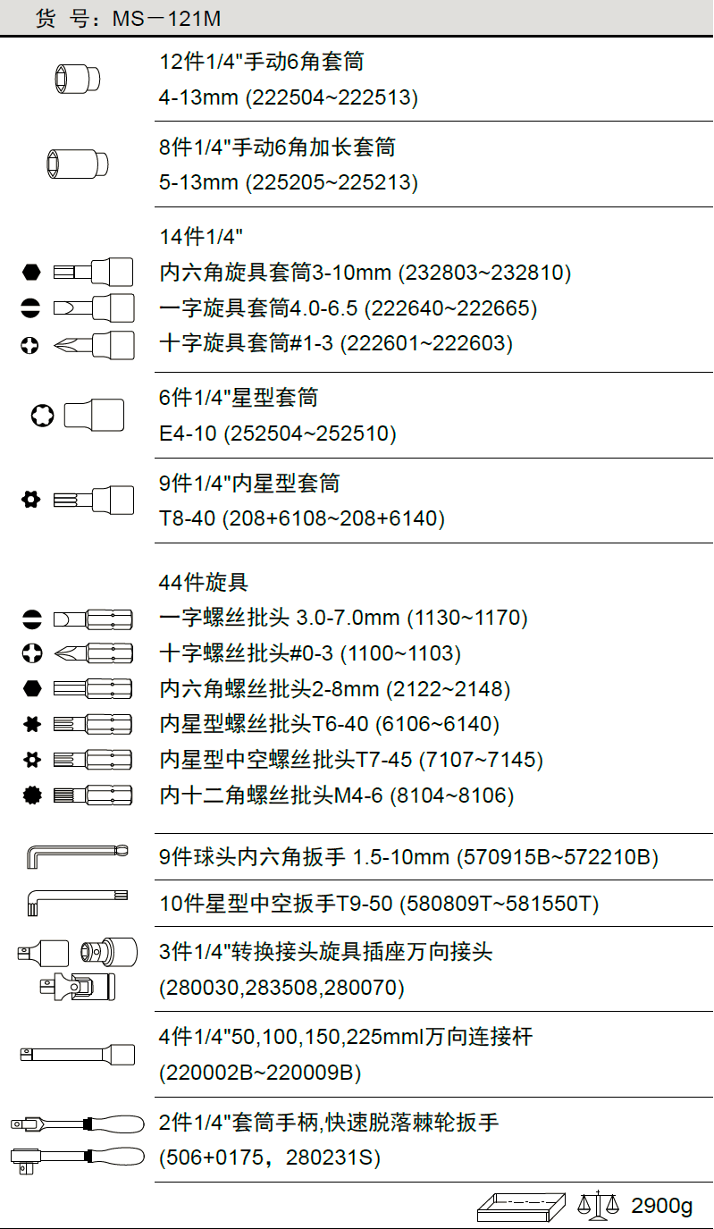 公制手动套筒扳手旋具组(121件套)