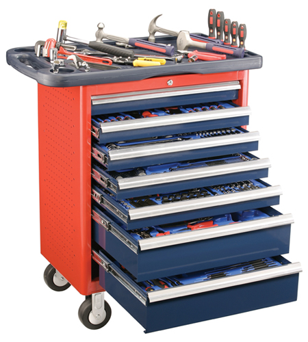 天赋工具Genius Tools抽屉式组合工具车具有高强度的承重力,可非常方便的将承载的工具放置在工具车的抽屉内存储,存取有序,使用便捷。