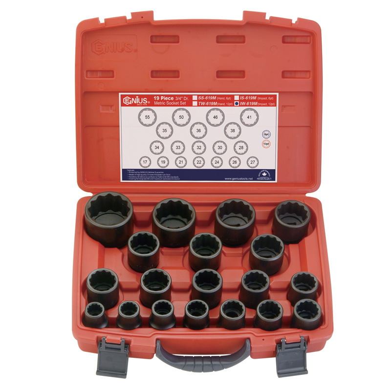 天赋工具 Geniustools 3/4" 系列19件套英制气动12角套筒组IW-619S ,内含 3/4" 系列即19mm英制气动12角套筒19件,订购电话:022-83728150