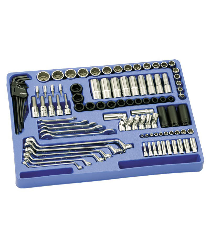 天赋工具100件套 英制手动及气动套筒和扳手组MS-100S为加拿大Geniustools品牌原装进口组合工具,质量保证,摆放整齐,价格适中,重量10300g,具体包含以下工具: