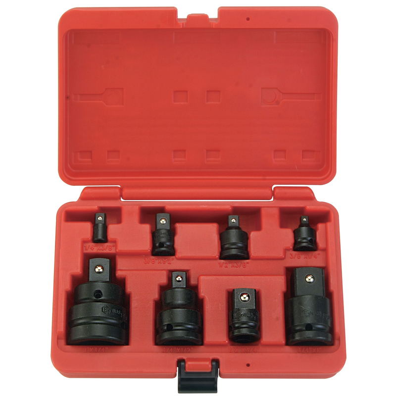 天赋工具 Geniustools 8件套气动转换接头组IA-288B,内包气动转换接头为铬钼钢材质,电脑控制“真空”热处理,深度淬火,硬度高,耐磨耐腐蚀,表面炭黑磷化,防腐防锈。圆弧内角设计,减少磨损。天赋工具红色塑箱套装 ,每个凹槽摆放对应规格型号工具,快速收纳,存取方便,不易丢失。广泛应用于各类机修装配、汽修、电力,石油,矿产等领域的设备维护。具体规格参数如下: