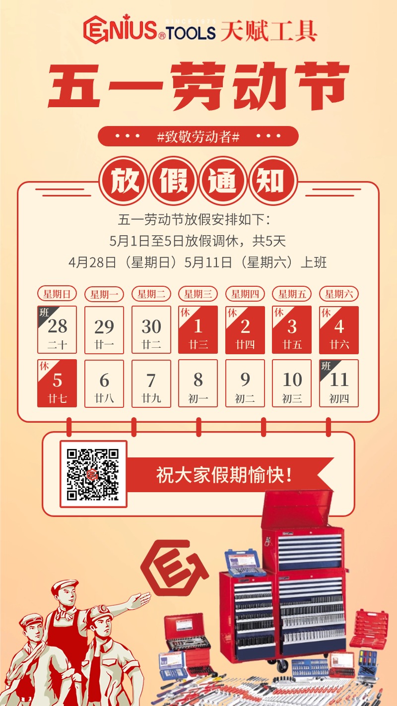 您好!随着五一劳动节的临近,天赋工具 Geniustools全体员工向您致以最诚挚的节日问候。