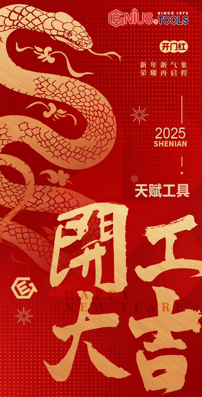 新春伊始,万象更新!天赋工具 Geniustools 在此向您致以最诚挚的祝福,祝您开工大吉,生意兴隆,财源广进!作为全球五金工具行业领先品牌,我们将继续以高品质的产品和专业的服务,助力您的每一份成功!