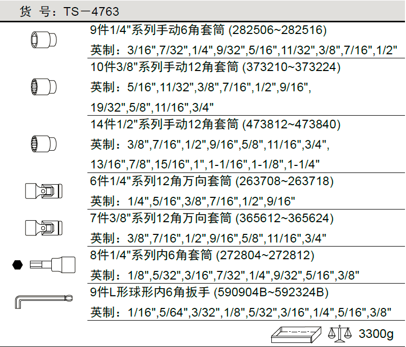 天赋工具英制手动套筒扳手组(63件套)TS-4763