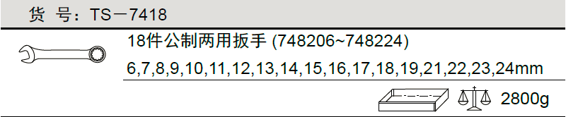 天赋工具18件套公制精抛光两用扳手组TS-7418