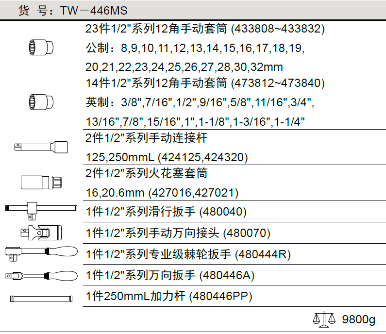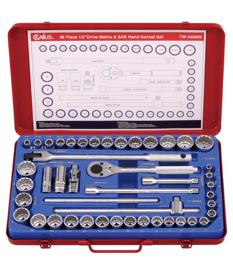 1/2"系列 46件套12角公英制混合套筒扳手组TW-446MS