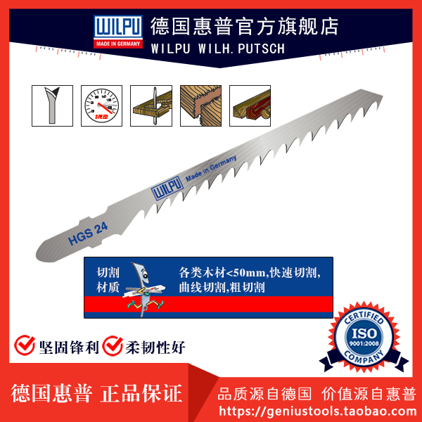 | 各类木材<50mm,快速切割,曲线切割,粗切割 | WP-HGS 24 | 合金工具钢 | 4 | 6.35 |