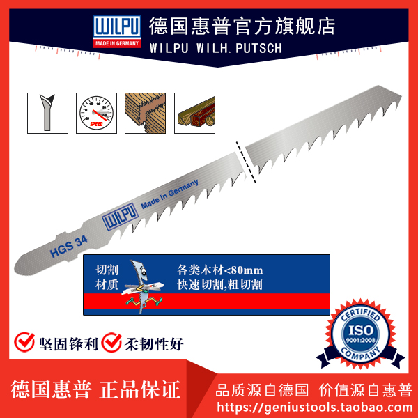 | 各类木材<80mm,快速切割,粗切割 | WP-HGS 34 | 合金工具钢 | 4 | 6.35 |
